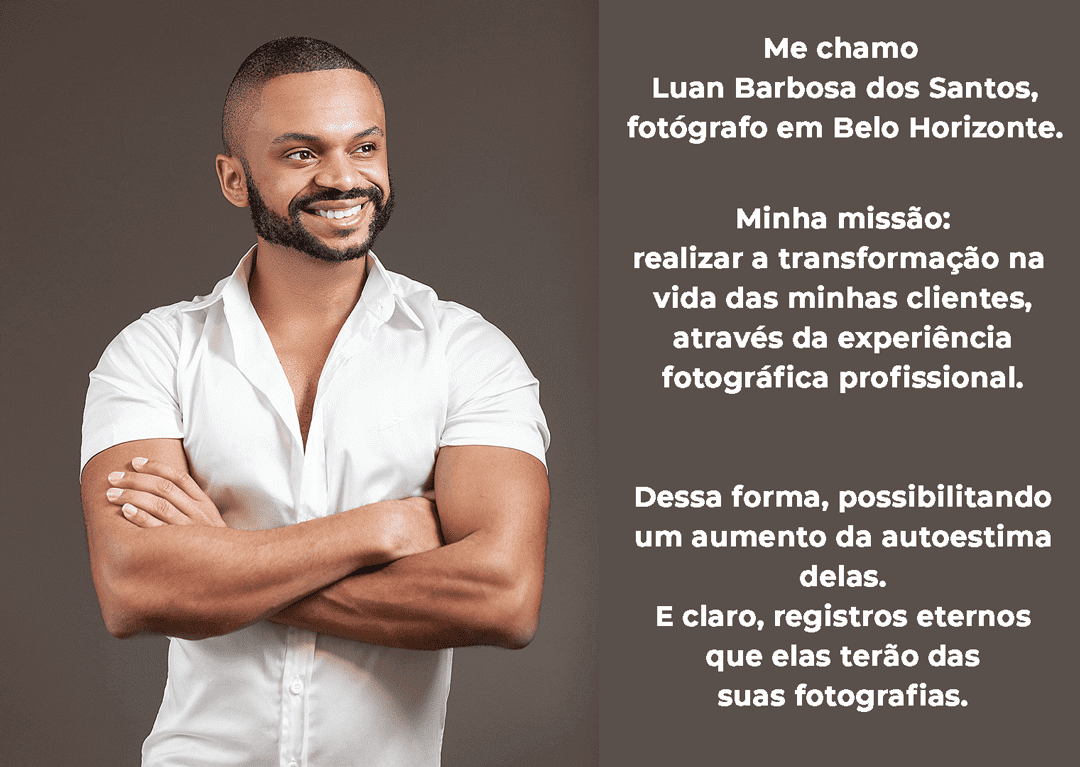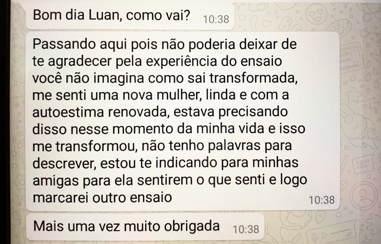 A vida é uma correria, quanto mais você só trabalha e faz outras coisas na vida, sem cuidar de você, está deixando de lado sua autoestima principalmente mulher. E aqui no meu trabalho eu renovo a autoestima das minhas clientes através de Ensaios externos e internos (locações de luxo).